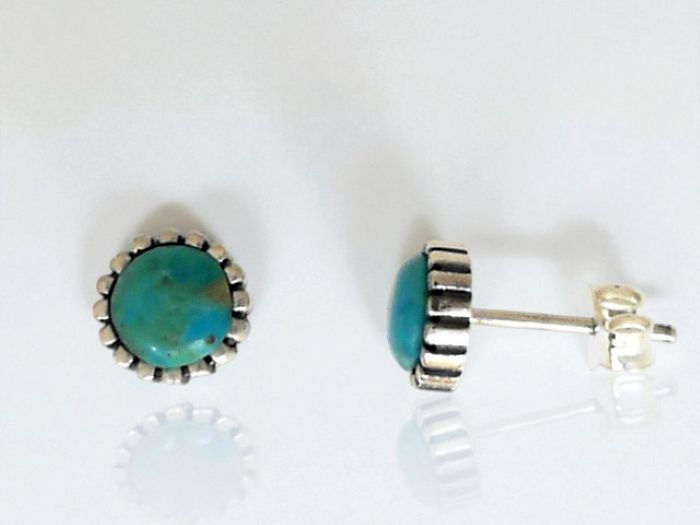 Turquoise Beaded Bezel Stud Earrings 7mm