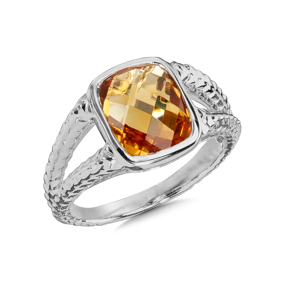 Braided Split Shank Genuine Citrine Bezel Set Ring